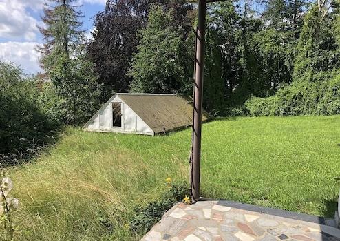 Das ca. 5.892 m² große Grundstück bietet eine Vielzahl an Gestaltungsmöglichkeiten. Das Grundstück wurde privat als Wochenenddomizil genutzt und umfasst neben der massiven Garage mit angebautem Wohnraum einen überdachten Pool und das massive Wochenendwohnhaus. Derzeit ist das Grundstück ungenutzt und die ehemals parkartig angelegten Bereiche wandeln sich in waldähnliche Freiflächen, welche derzeit über 70 Blaufichten beheimaten. Die Gebäude selbst sind modernisierungsbedürftig.