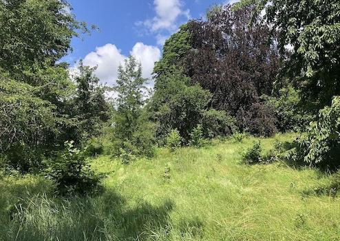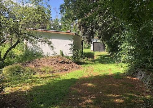 Die Grundstücksfläche ist von NW nach SO hängig, so dass eine terrassenförmige Nutzung möglich wäre. Der nördliche Teil ist eben.