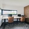 - Lichtdurchfluteter Raum mit raumhoher Glasfront und großformatigen Schiebetüren, die direkten Zugang zur überdachten Terrasse mit Lamellendach bieten. Die hochwertige Küche ist ausgestattet mit modernen Einbaugeräten und großem Kochinsel. Gemütlicher Wohnbereich mit 12 kW Holzofen und erhöhtem Bürobereich mit Blick auf die Straße.