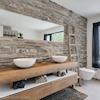 - Lichtdurchflutet mit Panoramablick auf das Grundstück. Ausgestattet mit Badewanne, großer begehbarer Dusche, WC und stilvollem Doppelwaschtisch.