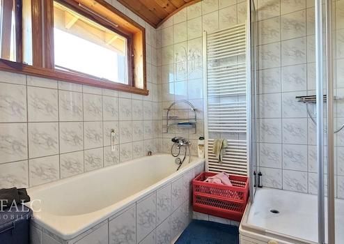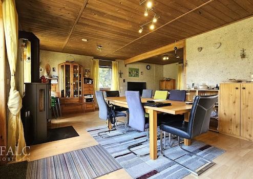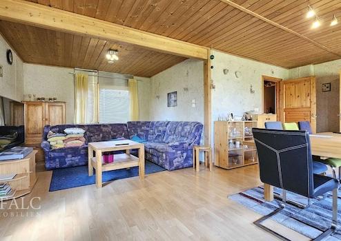 Ein gesundes Wohnklima entsteht durch die Verwendung natürlicher Materialien wie den norwegischen Fichtenholzfenstern mit Doppelverglasung und der Holzständerbauweise, die für eine warme, angenehme Atmosphäre sorgt. Besonders erwähnenswert ist die sogenannte Kleintafel-Bauweise – eine hochwertige, in Norwegen bewährte Weiterentwicklung der klassischen Ständerbauweise. Durch den Einsatz kleiner, präzise gefertigter Wandsegmente wird zuverlässig verhindert, dass sich die Dämmung im Laufe der Jahre absetzt oder schrumpft – ein typisches Problem vieler Fertighäuser. Kältebrücken und daraus resultierende Energieverluste werden somit dauerhaft ausgeschlossen. Beheizt wird das Haus mit einer zuverlässigen Gaszentralheizung – zusätzlich sorgt ein Holzofen für wohlige Wärme und Gemütlichkeit an kalten Tagen. Eine Garage sowie ein Carport bieten ausreichend Stellplatz für Fahrzeuge. Das große, naturbelassene Grundstück eröffnet zahlreiche Möglichkeiten – nicht nur für Garten- oder Tierhaltung, sondern auch durch das vorhandene Nebengebäude, das nach einer Renovierung vielfältig genutzt werden kann.