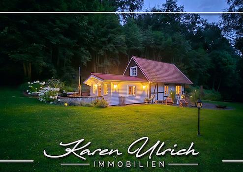 Natur pur – auf einem riesigen Grundstück in einem Tal befindet sich dieses voll ausgestattete kleine Haus mit allen erdenklichen Annehmlichkeiten. Sie befahren das Grundstück direkt über ein Gut im Tal. Gemütliches kleines weißes Haus mit einer Fachwerkfassade aus dem Baujahr 1990 mit 3 Räumen. Alles top renoviert, neues Bad mit barrierefreier Dusche und Glasabtrennung, neue Einbauküche in Hochglanz von Nobilia, Natursteinoptik-Fliesen in großem Format von Villeroy & Boch. Im Dachgeschoss ein großer Raum mit Einbauschränken. Vollholztüren und ein Pelletofen sowie eine Gasheizung für wohlige Wärme. Auf dem Grundstück befindet sich noch ein Holzschuppen. Schönes schmiedeeisernes Tor und eine lange Auffahrt mit Natursteinmauer. Große Parkflächen, Überdachte Terrassen, mehrere Outdoorflächen mit Außenkaminen, Outdoorküche mit hochwertigem Weber Grill und und und…. Ein Refugium für Naturliebhaber mit sonnigem Grundstück und kleinem Bachlauf.