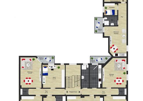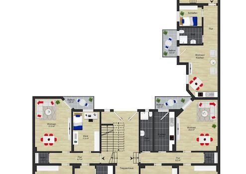 - drei 4-Raum-Wohnungen mit ca. 93-97 m² Wohnfläche und Balkon