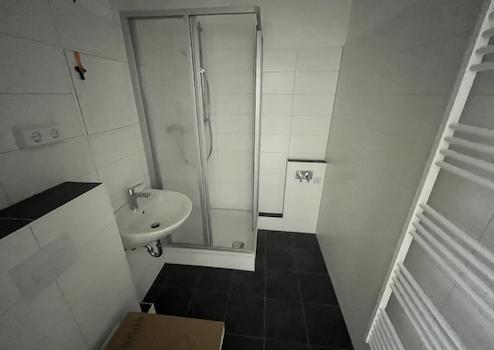 - gefliestes innenliegendes Badezimmer mit Dusche und Handtuchheizkörper