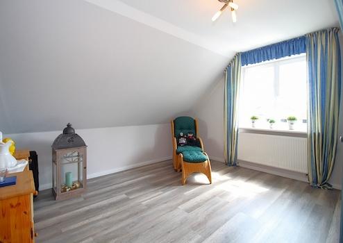 Das Dachgeschoss überzeugt mit einem großzügigen Hauptschlafzimmer sowie drei weiteren Zimmern, die flexibel als weiteres Schlafzimmer, Büro oder Gästezimmer genutzt werden können. Ein modernes Tageslichtbad mit Badewanne, Dusche und Fußbodenheizung ergänzt diese Wohnebene. Ein praktischer Abstellraum mit Treppenaufgang führt in den ausgebauten Spitzboden.