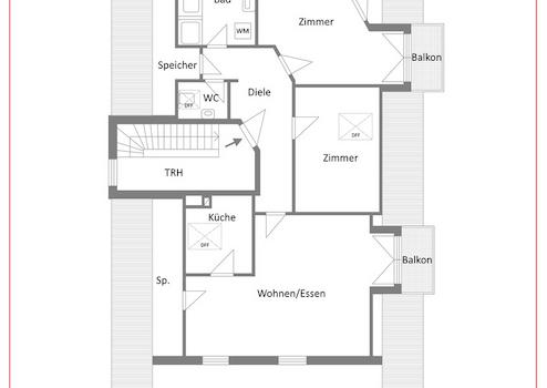Dachgeschosswohnung mit Charme - Drei Zimmer, zwei Balkone, Einbauküche & unverbaubare Aussicht