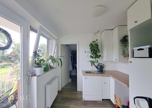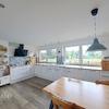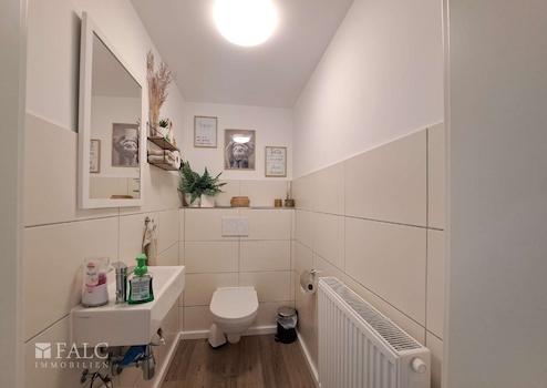 Im Erdgeschoss erwartet Sie eine einladende Diele, von der Sie in das helle Wohn- und Esszimmer mit gemütlichem Kaminofen gelangen. Die Küche ist separat und mit einer hochwertigen Einbauküche ausgestattet – diese ist bereits im Kaufpreis enthalten. Außerdem befinden sich auf dieser Ebene ein Hauswirtschaftsraum, ein Büro sowie ein Gäste-WC.