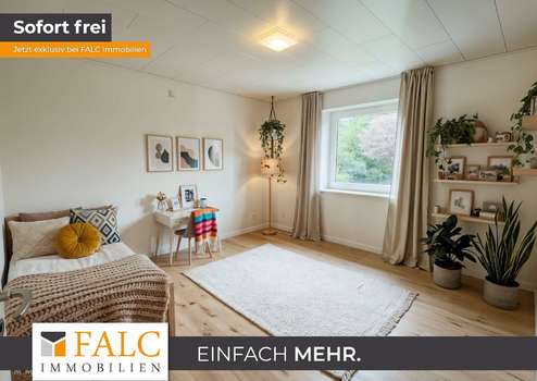 Vom Wohnzimmer aus erreichen Sie die drei weiteren Zimmer, die flexibel als Schlafzimmer, Kinderzimmer oder Büro genutzt werden können. Jedes Zimmer punktet mit Helligkeit und viel Raum für individuelle Gestaltungsideen.