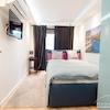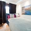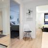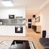 Modern möbliertes Apartment mit grozügigem Wohn/Schlafbereich, möbliert mit Doppelbett, Kleiderschrank und Essbereich. Bad mit Fenster und Badewanne. Separate, voll ausgestatte Küche.