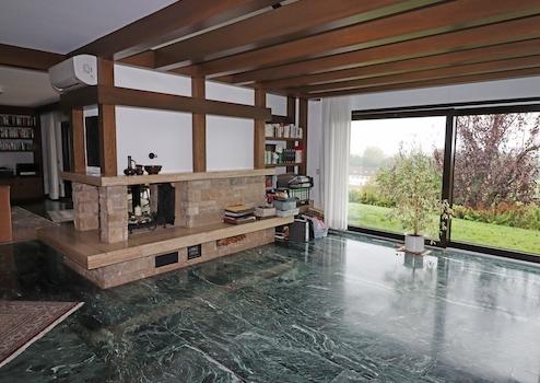 Die Fußbodenheizung sowie ein Kaminofen sorgen für Wärme und schaffen eine gemütliche Atmosphäre.