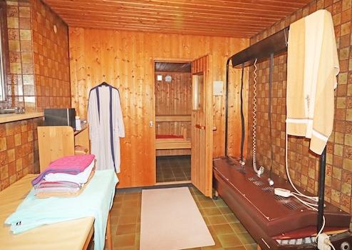 Der Wohnbereich des Hauses umfasst insgesamt fünf Zimmer, darunter drei Schlafzimmer, und bietet somit genügend Platz für die Familie. Der Schlafbereich im Dachgeschoss wird durch ein großes Badzimmer, welches Seinesgleichen sucht sowie ein kleines Duschbad, angrenzend an das Kinderzimmer, ergänzt. Ein Gäste-WC im Erd- und ein drittes, kleines Duschbad im Kellergeschoss sorgen für genügend Komfort. Zu den weiteren Annehmlichkeiten gehören ein praktischer Abstellraum, der an die Küche angrenzt sowie das Untergeschoss mit den Kellerräumen. Darunter befinden sich ein großer Hobby- oder Partyraum, ein Raum mit Sauna und Solarium, der für Entspannung und Wohlbefinden sorgt sowie ein Weinkeller.