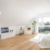 Die Ausstattung unterstreicht den Anspruch: Edles Eichenparkett verleiht allen Wohnräumen eine warme Atmosphäre, ergänzt durch eine elegante Eichenholztreppe, die stilvoll die Etagen verbindet. Zwei geschmackvolle Bäder – eines davon en Suite im Dachgeschoss – sowie ein zusätzliches Gäste-WC im Erdgeschoss bringen Komfort auf allen Ebenen.