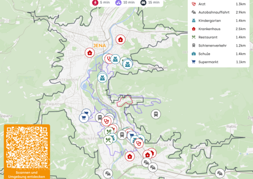 Das Universitätsklinikum Jena sorgt in komfortabler Reichweite für erstklassige medizinische Versorgung. Gleichzeitig profitieren Sie von den Vorzügen eines ruhigen, naturnahen Wohnortes, ohne auf die Annehmlichkeiten der Stadt verzichten zu müssen.