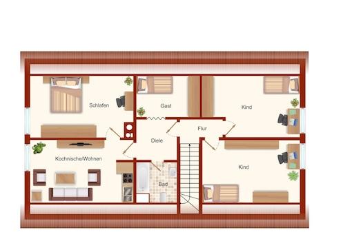 Mit insgesamt acht Schlafzimmern und zwei Badezimmern ist dieses Haus ein wahres Raumwunder – perfekt für große Familien, Mehrgenerationen-Lösungen oder einfach für alle, die sagen: „Platz kann man nie genug haben!“ Zwei zusätzliche Gäste-WC´s sorgen dafür, dass auch spontane Besucher sich rundum wohlfühlen.