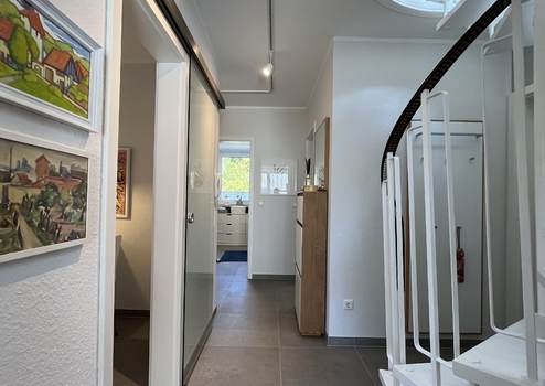 Die Gasetagenheizung befindet sich hinter der Wendeltreppe im Technik-/Abstellraum und wurde 2015 ausgetauscht und 2023/2024 technisch erneuert und der Warmwasserspeicher ausgetauscht.