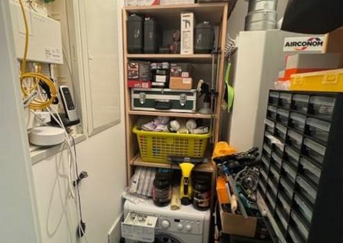 Der Schlafbereich schließt direkt an und verfügt über ein ensuite Duschbad (WC, Waschplatz, Duschzone). Ein zweites Duschbad sowie ein Abstellraum mit Anschluss für Waschmaschine und Trockner sind über einen separaten Flur erreichbar.