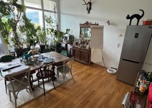 Der Eingangsbereich öffnet sich in den großzügigen Wohn- und Essbereich mit integrierter Küche. Von hier führt der Weg auf die großzügige, überdachte Loggia – abends mit Sonne, ideal zum Entspannen oder für gesellige Stunden.