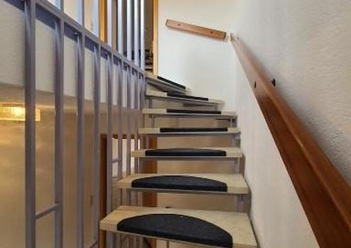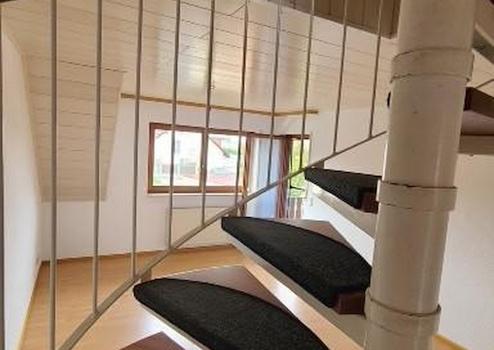 Gäste-WC und SZ, von dem Sie, wie auch vom WZ, Zugang zum Balkon haben. Mit einer edlen schön anzuschauenden Wendeltreppe aus massiver Stahlkonstruktion gelangen Sie ins das großzügige Maisonette-Zimmer. Die Keller, der Hausflur und die Wohnung wurden fachmännisch gestrichen.