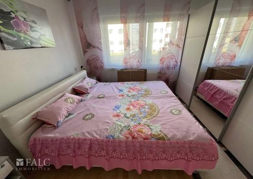 Das Hauptschlafzimmer ist ein Rückzugsort der Ruhe. Es bietet ausreichend Platz für ein großes Bett und einen Kleiderschrank. Die großen Fenster sorgen auch hier für eine angenehme Helligkeit. Ein weiteres Zimmer kann flexibel als Kinderzimmer, Büro oder Gästezimmer genutzt werden, je nach den Bedürfnissen der Familie.