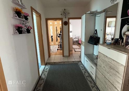 Diese charmante Wohnung bietet auf 77,5 m² eine ideale Wohnfläche für junge Familien. Beim Betreten der Wohnung empfängt Sie ein einladender Flur, der ausreichend Platz für Garderobe und Stauraum bietet. Die hellen Wände und der pflegeleichte Bodenbelag schaffen eine freundliche Atmosphäre.