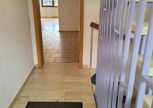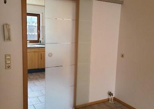 Mitte des Wohnbereichs biegen Sie wieder nach rechts ab in Richtung Bad, Gäste-WC und SZ, von dem Sie, wie auch vom Wohnzimmer, Zugang zu Terrasse und Garten haben. Die Wohnung wurde fachmännisch gestrichen.