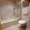 - BAD: EG: 1 großes schönes hell gefliestes Bad mit 1 Waschbecken, 1 Badewanne mit Duschvorrichtung, 1 WC und Badmöbel, Ausstattung vom Eigentümer
