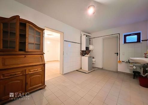 Der Vollkeller mit erweitert das Raumangebot des Hauses und bietet neben einem praktischen Hauswirtschaftsraum mit Außeneingang auch einen zusätzlichen Abstellraum. Ein weiteres Zimmer im Keller könnte als Gäste-, Kinder- oder Schlafzimmer genutzt werden. Auch hier befindet sich ein weiteres saniertes Vollbad