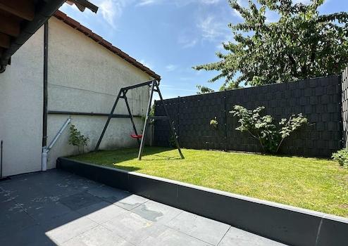 Im Erdgeschoss erwartet Sie eine großzügige, lichtdurchflutete Wohnung mit ca. 122 m² Wohnfläche und zusätzlichen ca. 27 m² Nutzfläche. Der offene Wohn-Essbereich mit moderner Einbauküche und direktem Zugang zur sonnigen Terrasse sowie zum Garten ist das Herzstück der Einheit. Zwei geräumige Schlafzimmer, ein Tageslichtbad mit Wanne und die zugehörige Einzelgarage bieten maximalen Komfort – die Wohnung ist aktuell vom Eigentümer bewohnt und kann nach Absprache bezogen werden.