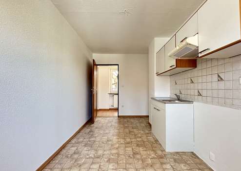 Die Wohnung im Obergeschoss bietet ca. 80 m² Wohnfläche mit einem großen, hellen Wohnzimmer, einem Schlafzimmer, einer separaten Küche sowie einem Tageslichtbad. Ein Balkon erweitert den Wohnraum ins Freie. Auch diese Wohnung ist leerstehend und kurzfristig bezugsfrei – ideal für Eigennutzung oder Neuvermietung.