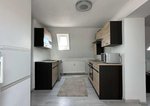 Die charmante Dachgeschosswohnung mit ca. 59 m² Wohnfläche wurde ebenfalls umfassend renoviert und ist seit 2024 zuverlässig für eine Kaltmiete von 700 € vermietet. Sie bietet 2,5 Zimmer, ein helles Wohnzimmer, ein gemütliches Schlafzimmer, eine Küche mit moderner Einbauküche sowie ein Tageslichtbad mit Dusche – ideal für Singles oder Paare.