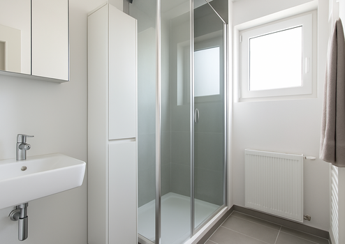 ✔ Stilvolles Tageslichtbad mit Dusche sowie separates WC