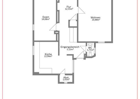 ca. 13,94 qm; Abstellkammer ca. 1,43 qm; = ca. 70,83 qm
