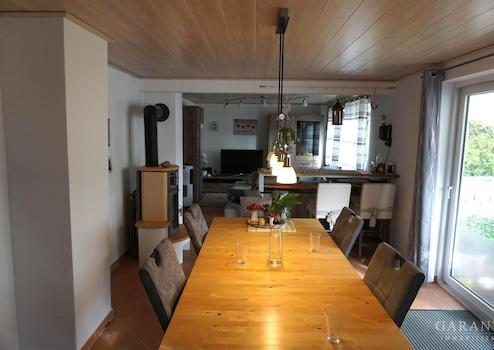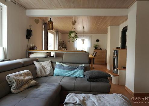 Im Erdgeschoss erwartet Sie eine großzügige Küche mit viel Platz für Koch- und Backbegeisterte. Der angrenzende, offene Wohn- und Essbereich ist hell, einladend und verfügt über einen hochwertigen Kaminofen mit Wassertaschen zur Brauchwassererwärmung - eine perfekte Verbindung von Behaglichkeit und Energieeffizienz. Ein modernes Dusch-WC rundet das Raumangebot im Erdgeschoss ab.