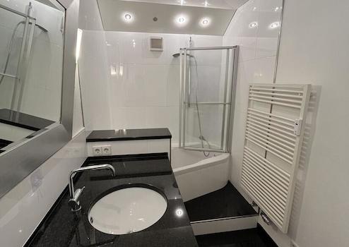 * Badezimmer mit Granitausstattung, moderner Badewanne und Dusche