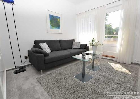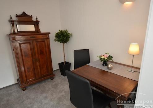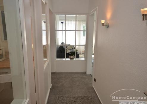 Diese exklusive Wohnung befindet sich in einer Bremer Villa in einer ruhigen Seitenstraße. Die Möblierung kombiniert moderne und auch antike Möbel und erzeugt damit einen ganz eigenden Charme. Die helle Einbauküche ist voll ausgestattet. Über den Flur erreicht man das Wohnzimmer. Der Hingucker ist die eingebaute Fensterfront. Vom Flur bekommt man somit, aus der Zuschauerperspektive einen Einblick in das Wohnzimmer. Hier dominieren klare Formen und das Farbspiel grau- weiß mit warmen Akzenten der Vintagemöbel im Arbeitsbereich. Das Badezimmer am Ende des Flures wurde modernisiert und ist nun mit großen Fliesen , einer Dusche und Glaswänden versehen. Das Schlafzimmer ist mit einem Doppelbett( 1,40 x 2,00m) ausgestattet. Sowohl vom Schlafzimmer, als auch vom Wohnzimmer kann man den Balkon betreten. Er ist nach süd-ost ausgerichtet und läßt viel Licht in die Räume. Der alte Baumbestand rund ums Haus läßt viel Ruhe zu. Die Wohnung ist perfekt für eine Person.