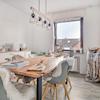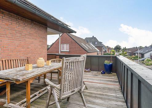 Obergeschoss (ca. 100 m²): Wohn- und Esszimmer (mit Zugang zur Dachterrasse), Schlafzimmer, Kinderzimmer, Küche, Diele, Bad (mit Dusche und Wanne)