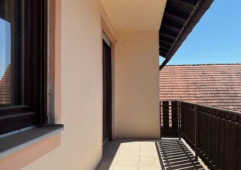 Das Obergeschoss ist mit einer Steintreppe erschlossen. Vom ebenfalls großen und mit PVC ausgelegtem Flur besteht Zugang zur sonnigen Südloggia. Das Schlaf-, die zwei Kinder- sowie das Gästezimmer sind ebenfalls mit PVC-Böden versehen. Zudem ist ein weiteres WC vorhanden, das bislang noch nicht ausgebaut wurde.