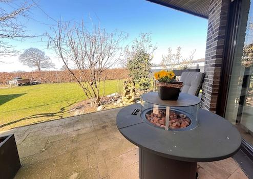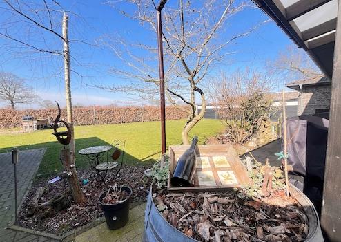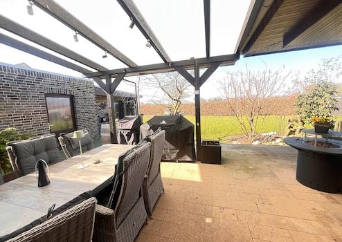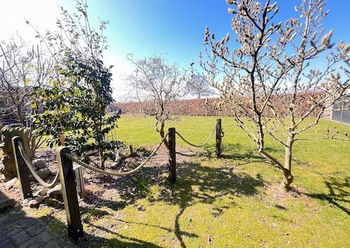 Die hochwertige Einbauküche ist mit modernen Markengeräten ausgestattet und bietet reichlich Stauraum sowie eine großzügige Arbeitsfläche – ein Paradies für Hobbyköche und Genießer. Dank der hochwertigen Bodenbeläge aus Fliesen, Vinyl und Laminat entsteht eine stilvolle und pflegeleichte Wohnatmosphäre. Die Küche und die Bäder sind zusätzlich mit einer angenehmen Fußbodenerwärmung ausgestattet, die für ein behagliches Wohngefühl sorgt. Beheizt wird das Haus durch eine effiziente Erdgasheizung, die eine gleichmäßige Wärmeverteilung gewährleistet. Für beste Konnektivität sorgt der Glasfaseranschluss, der schnelles Internet ermöglicht. Auch an die Umwelt wurde gedacht: Das 3-Kammer-System für Abwasser trägt zur ökologischen Nachhaltigkeit bei. Die große, überdachte Terrasse lädt zu entspannten Stunden im Freien ein und bietet einen herrlichen Blick auf den gepflegten Garten. Dieser ist vollständig eingefriedet und mit dichten Hecken sowie Sichtschutzzäunen versehen, sodass Privatsphäre und Geborgenheit garantiert sind. Der großzügige Außenbereich ist ein echtes Highlight. Die große überdachte Terrasse lädt zu gemütlichen Stunden im Freien ein, während der gepflegte Garten mit grünen Hecken und Sichtschutzzäunen für Ruhe und Privatsphäre sorgt. Hier können Sie entspannen und den Blick ins Grüne genießen.