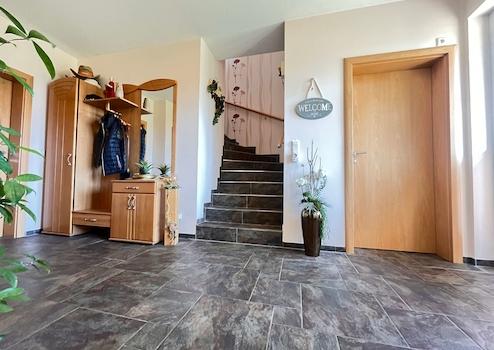 Die Raumaufteilung dieses Hauses ist optimal durchdacht. Das großzügige Wohnhaus bietet mit seinen zwei Vollgeschossen viel Platz für eine Familie. Die hellen und freundlichen Räume schaffen eine angenehme Wohnatmosphäre. Die Einliegerwohnung ist separat begehbar und ebenerdig gelegen – ideal für Gäste, Familienangehörige oder zur Vermietung. Vom Wohnhaus haben sie einen direkten Zugang zur Einliegerwohnung, sodass sich die Immobilie auch zum ebenerdigen Wohnen eignet.