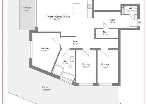 4,5 Zimmer-Erdgeschoss-Wohnung mit Gartenanteil von ca. 173 qm.