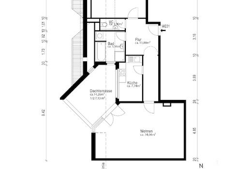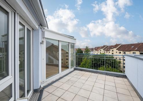 Eine großzügige Diele mit Platz für eine Garderobe empfängt Sie und führt direkt in das ca. 35 m² große Wohnzimmer. Dieses lässt sich flexibel einrichten, bietet ausreichend Raum für einen Essbereich und gewährt Zugang zur herrlich nach Südwesten ausgerichteten Dachterrasse mit Blick über die Dächer Giesings. Die ca. 7 m² große Küche bietet Platz für alle notwendigen Geräte, ist ebenfalls mit der Terrasse verbunden und überzeugt dank großer Fensterflächen durch eine helle, lichtdurchflutete Atmosphäre.