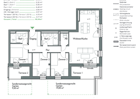 Diese durchdacht geschnittene 4-Raum-Wohnung bietet Ihnen auf 98,69 m² Wohnfläche alles, was zeitgemäßes Wohnen ausmacht: helle Räume, moderne Ausstattung und eine ruhige Lage direkt am Waldrand.