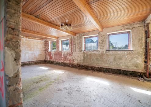 Das Wohnhaus in der Dorfstraße 34 ist mittlerweile in Jahre gekommen und bedarf einer umfassenden Sanierung oder einer gänzlichen Neuaufsetzung. Es wurden hierzu bereits Maßnahmen ergriffen und das Wohngebäude wurde weitgehend entkernt. Hieran könnte möglicherweise angeknüpft werden, sodass Sie diese Rohdiamanten je nach Mittellage oder handwerklichem Geschick weiter schleifen und bearbeiten könnten.