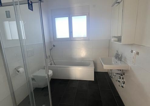 - Tageslichtbad mit Dusche, WC, Waschbecken und Badewanne
