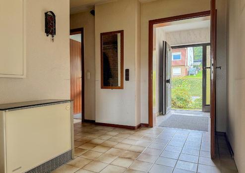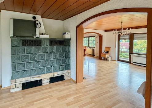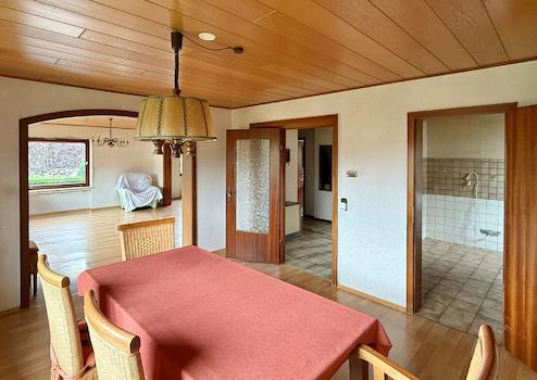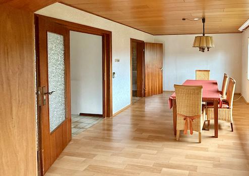 Das um 1970 erbaute Objekt überzeugt durch eine Wohnfläche von rund 155 m², verteilt auf zwei Ebenen und bietet zahlreiche Gestaltungsmöglichkeiten. Auf dem ca. 593 m² großen Grundstück finden Sie zwei Einzelgaragen und einen gepflegten Gartenbereich vor - die große Thuja im hinteren Bereich wurde inzwischen entfernt. Die Immobilie lässt sich ideal als klassisches Einfamilienhaus nutzen: Im oberen Bereich befinden sich die Hauptaufenthaltsräume wie Wohn-, Ess- und Küchenbereich. Hervorzuheben ist hier das bereits modernisierte Badezimmer mit bodentiefer, offener Dusche und altersgerechter Ausstattung. Die untere Etage bietet ausreichend Platz für Schlafzimmer und weitere Räume. Alternativ wäre das Haus mit entsprechenden Maßnahmen in zwei separate Einheiten aufteilbar. So könnten zwei eigenständige 2ZiKB Wohnungen entstehen - ideal für Mehrgenerationenwohnen, für heranwachsende Kinder oder auch zur Vermietung. So eignet sich das Haus sowohl für Familien, die viel Raum benötigen, als auch für Paare oder ältere Personen, die Wert auf eine altersgerechte Nutzung legen. Dank des vorhandenen Balkons sowie der überdachten Terrasse mit angrenzendem Wintergarten bietet die Immobilie außerdem schöne Rückzugsorte.