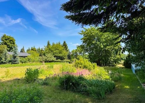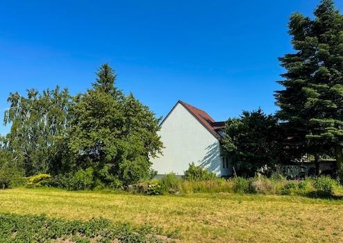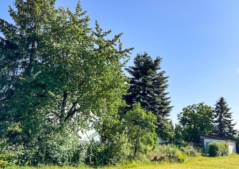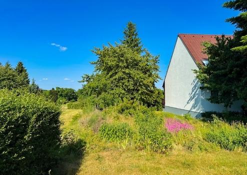 Was aber auch geht: Sich hier zunächst ein paar Jahre erholen und später eine Doppelhaushälfte errichten, denn hier handelt es sich um ein Baugrundstück.