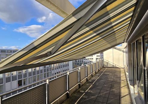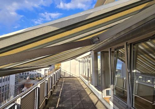 Die Dachterrasse des Penthouses hat eine Gesamtfläche von ca. 28 m², der Grundriss von ca. 12 x 2,5 Metern bietet Ihnen sehr viele Möglichkeiten der Gestaltung.