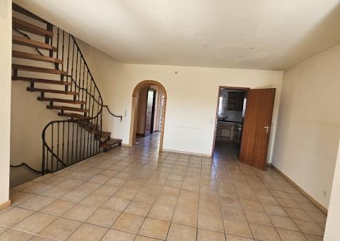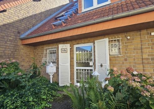 Die kleine Gemeinschaft von 2 zusammenhängenden Doppelhäusern (also 4 Häusern, versetzt gebaut) liegt ganz idyllisch kurz vor dem Feld. Eine kleine Zuwegung führt uns zum Haus. Der helle Eingangsbereich ist einladend und verfügt über ein Gäste-Wc. Nun betreten wir den offenen Essbereich mit Übergang zum Wohnzimmer. Hier ist ausreichend Platz für gesellige Runden und das Leben als Familie. In der angrenzenden Küche ist eine Küche vorhanden, die gern bleiben darf.