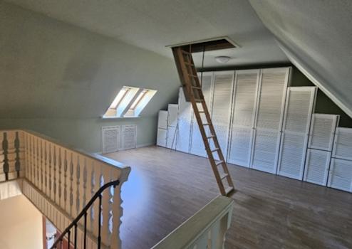 Eine Etage höher, im Dachgeschoss bleibt viel Raum für Kreativität. Ein grosses, helles Dachstudio bietet Platz für einen grossen Schlafraum, ein Atelier oder auch ein riesiges Homeoffice.