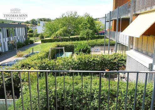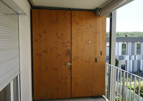 Vom geräumigen Wohnzimmer mit großen bodentiefen Fenstern, haben Sie direkten Zugang auf den geräumigen Balkon mit schönem Blick ins Grüne. Ein praktischer Balkonschrank sorgt für wunderbare Ordnung. Zum Schutz vor Sonne gibt es eine manuelle Markise.